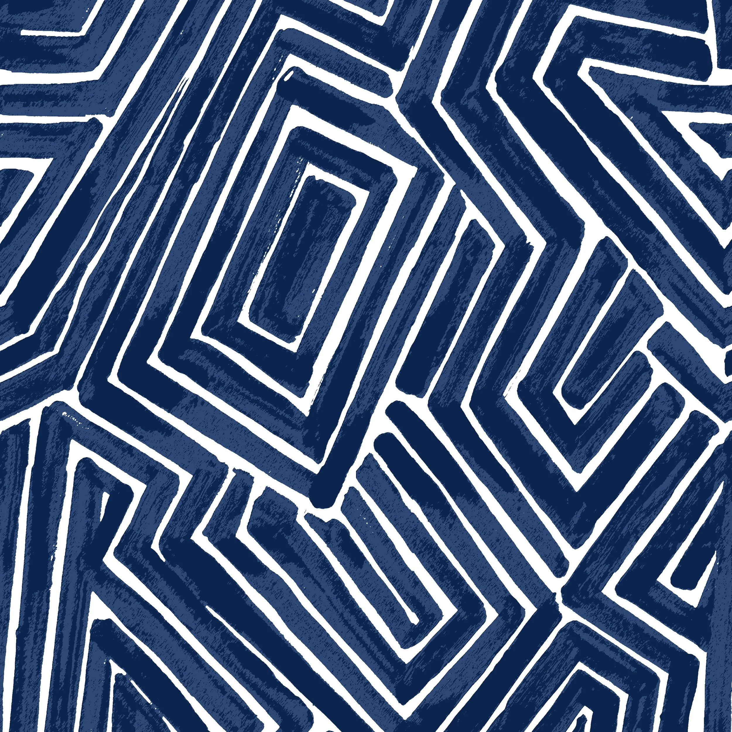 This design is styled after the mid century American artist, Frank Stella. “Maze” mimics the chunky and angular stripes of Stella’s paintings.